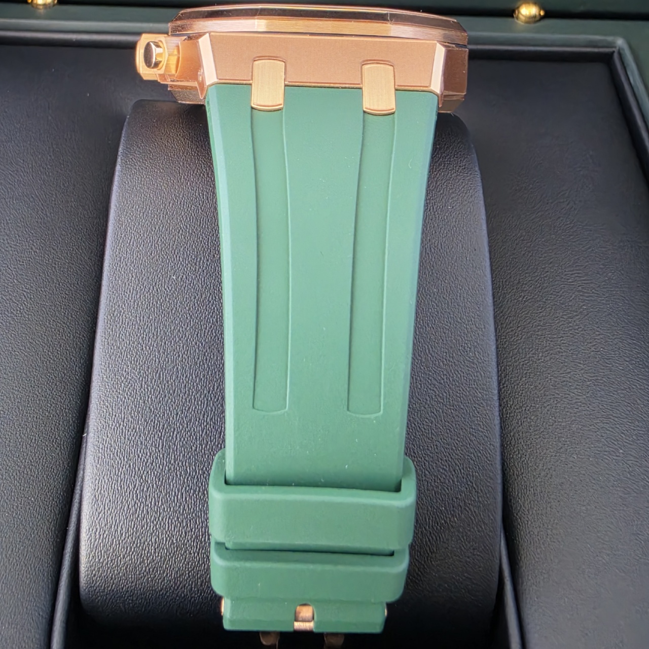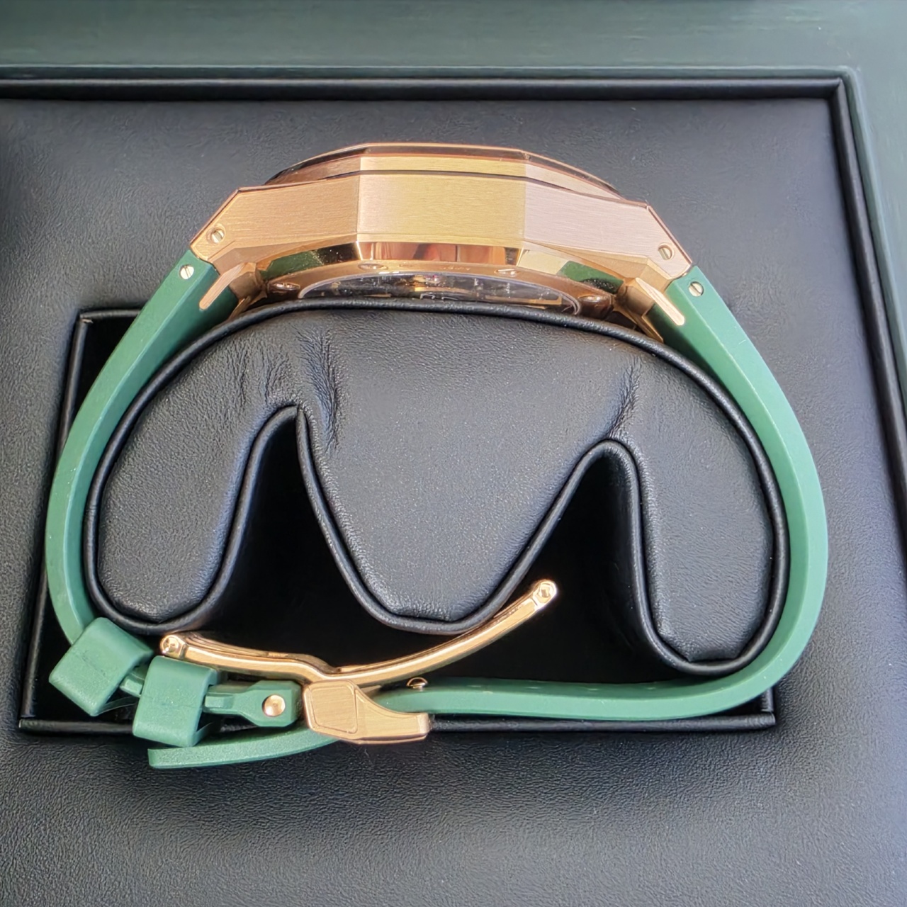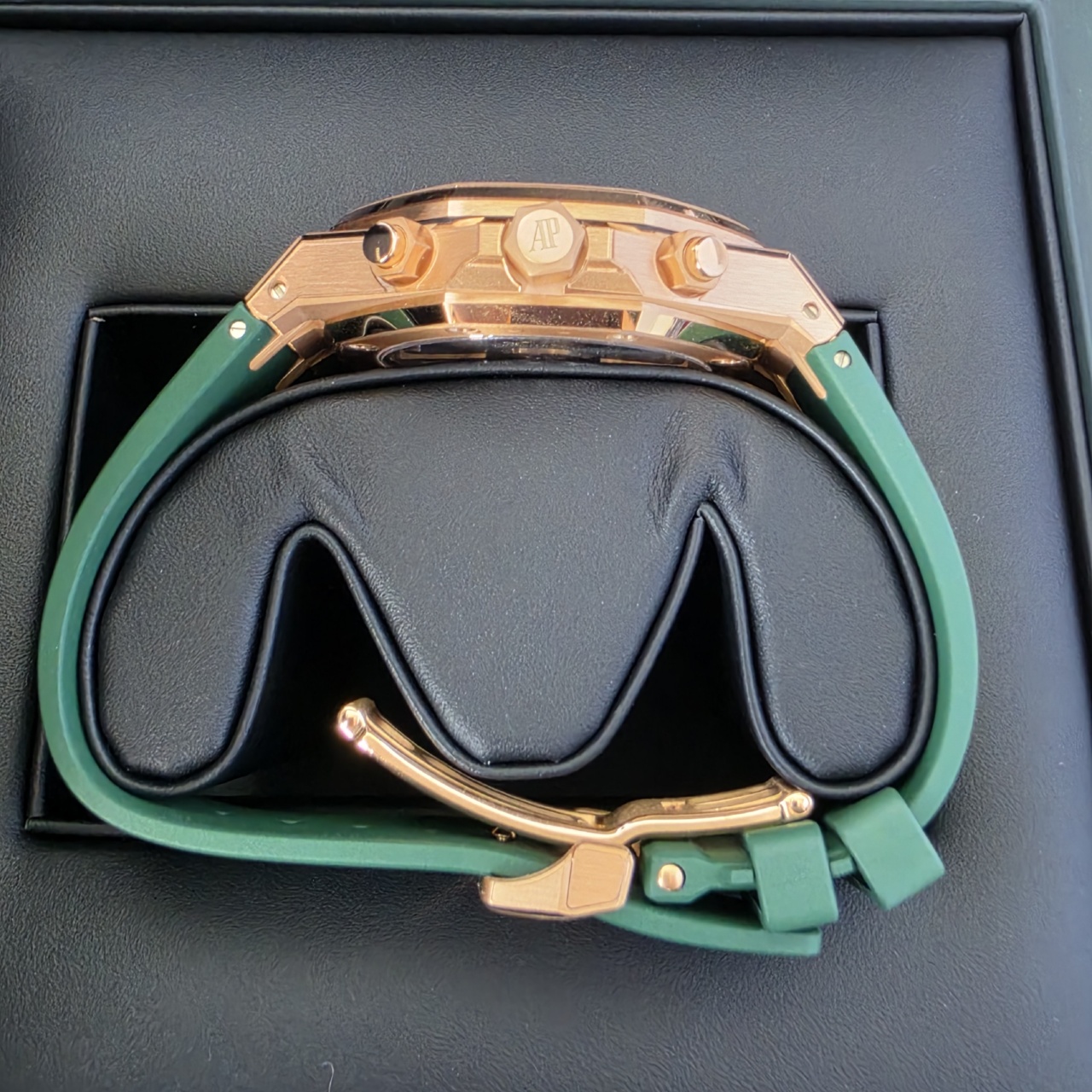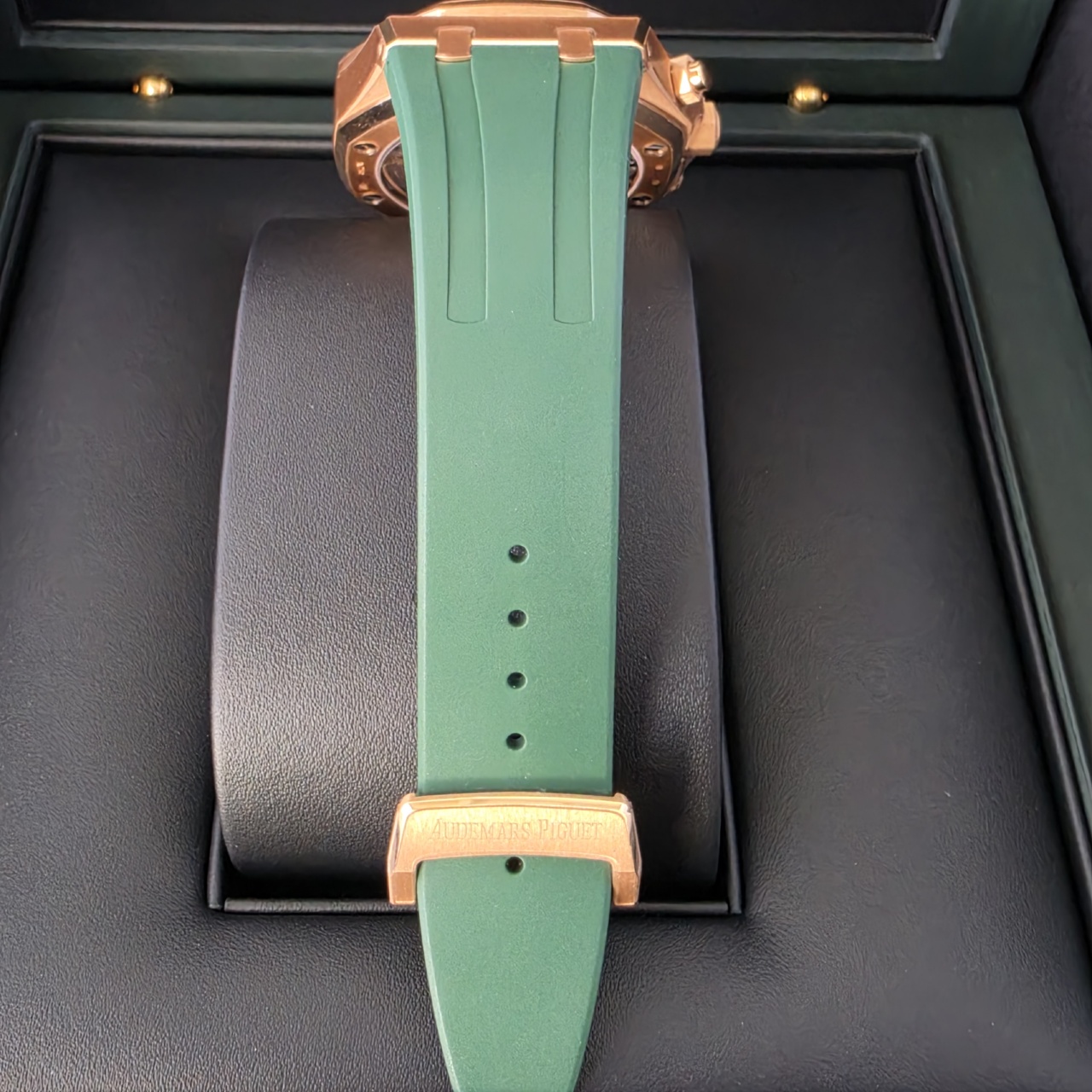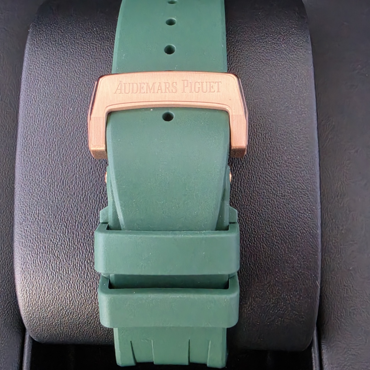 Bracelet: Khaki green Rubber strap with 18-carat pink gold AP folding clasp