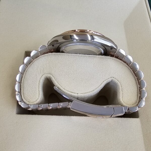 Case: Stainless steel w/ Everose gold and Diamond bezel, inner reflector ring engraved with serial number.