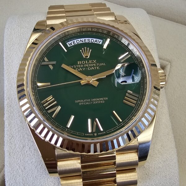 Known the world-over, anyone who wishes to exude a level of class and power chooses the Day-Date in gold. The series hit the market in the 1950s and continues production today with an improved movement with smoother winding and a Double Quickset function, more solid links, and better water-resistance.