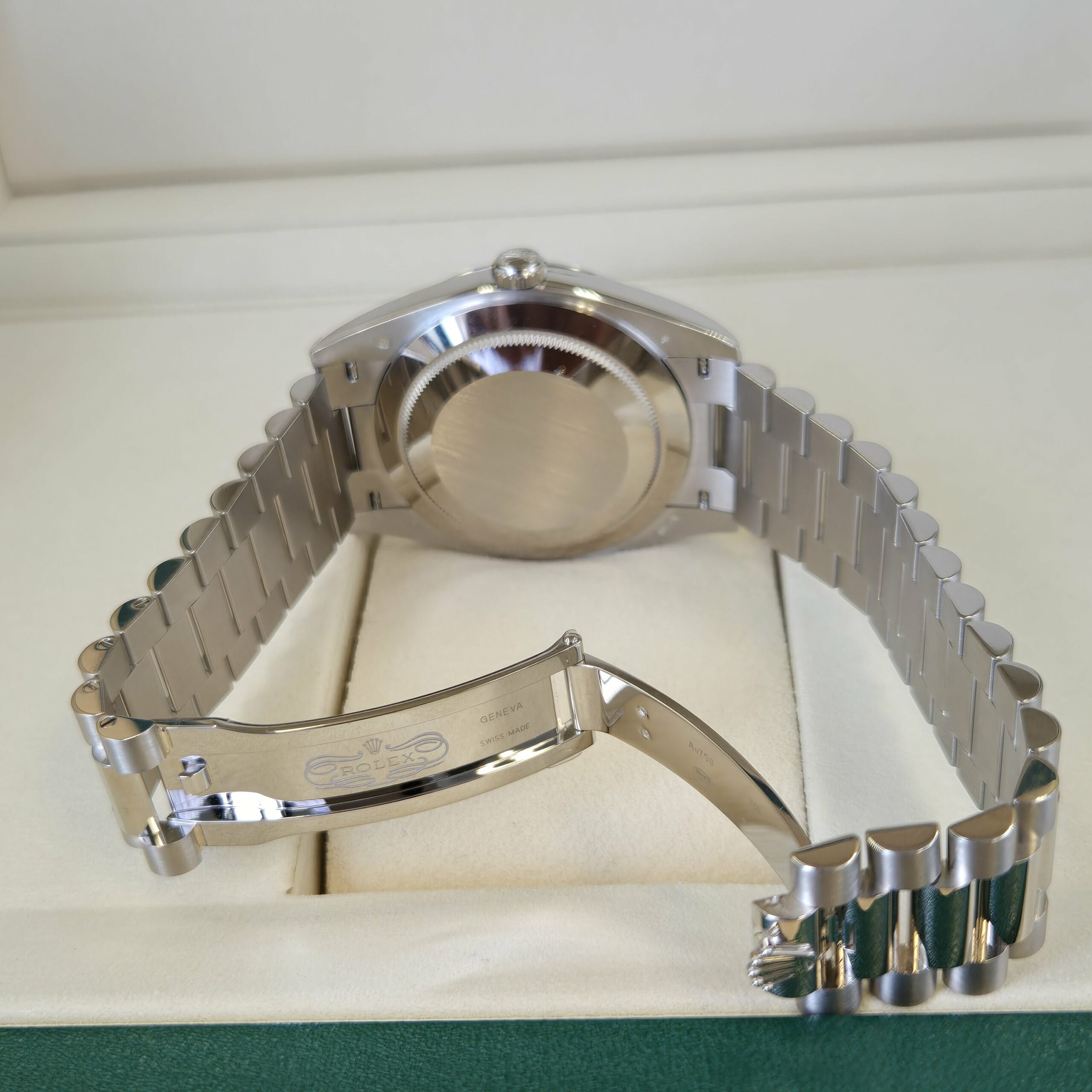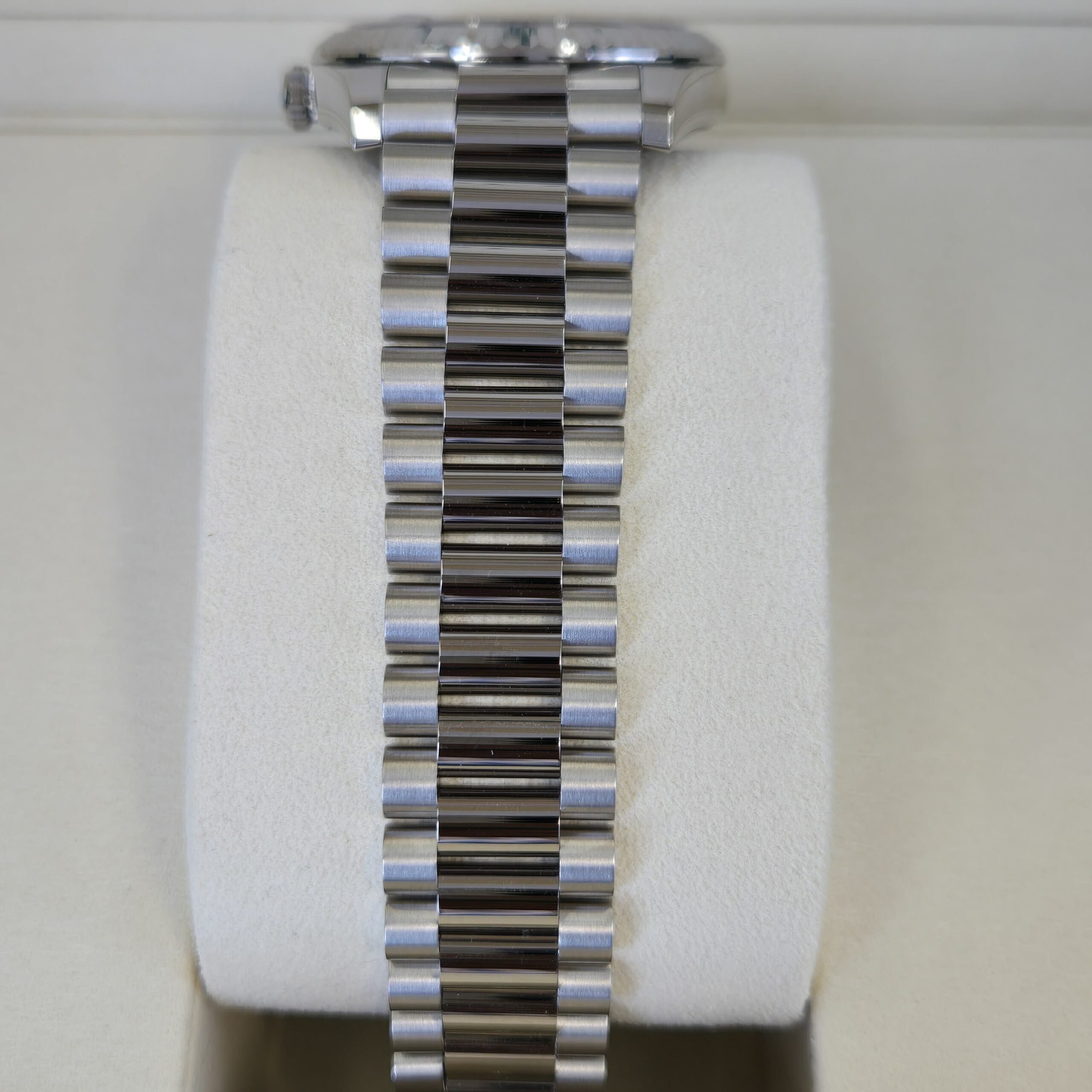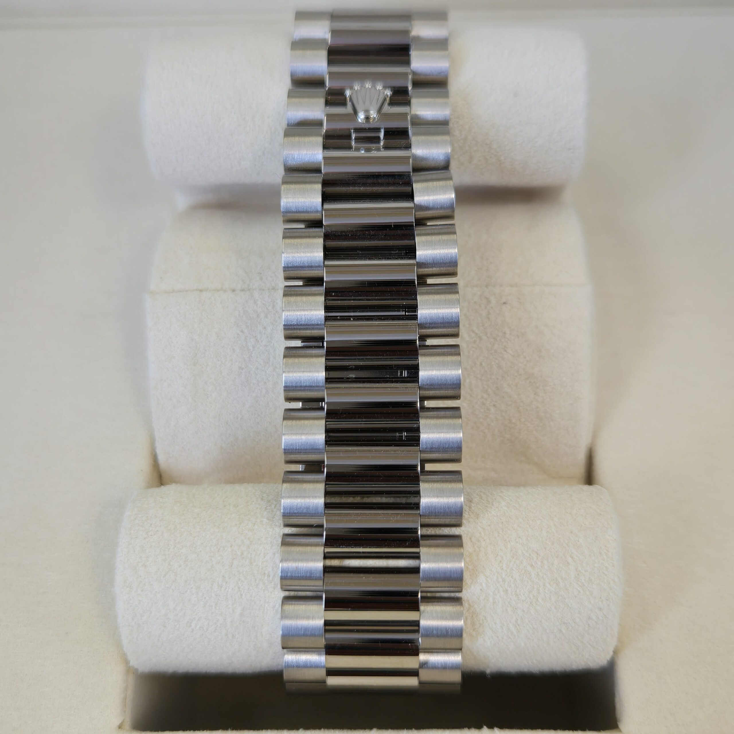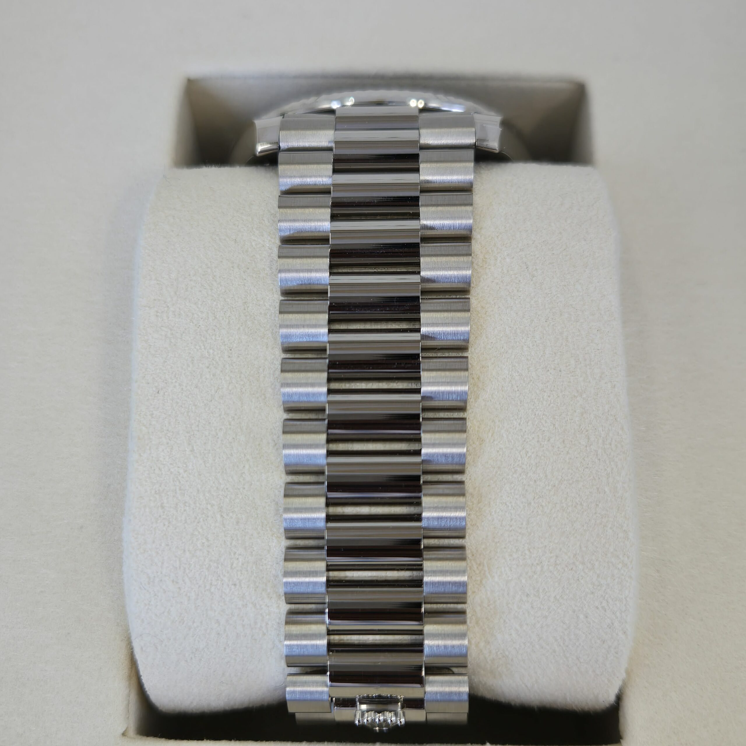 Bracelet: President, semi-circular three-piece links, 18 ct White gold with Concealed folding Crownclasp