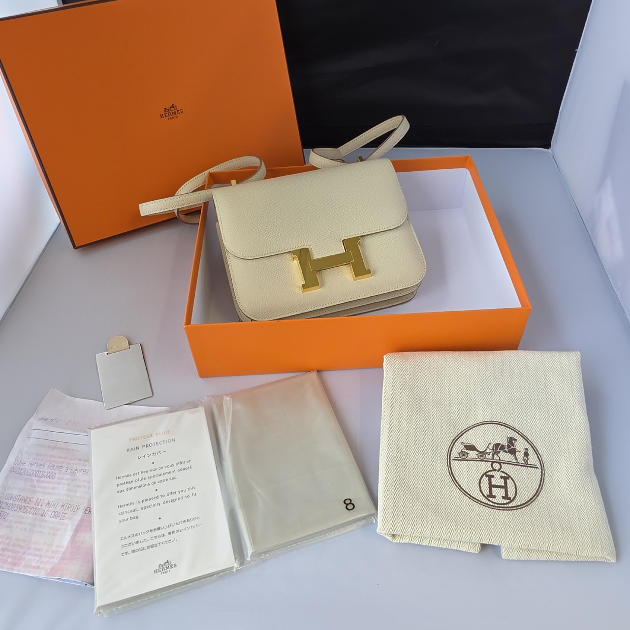 Comes With: Full set with Hermes Box, Picture of Receipt and Dust bag