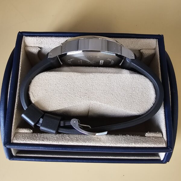 Dial: Black with luminous Arabic numerals and hour markers. Small seconds at 9 o’clock.