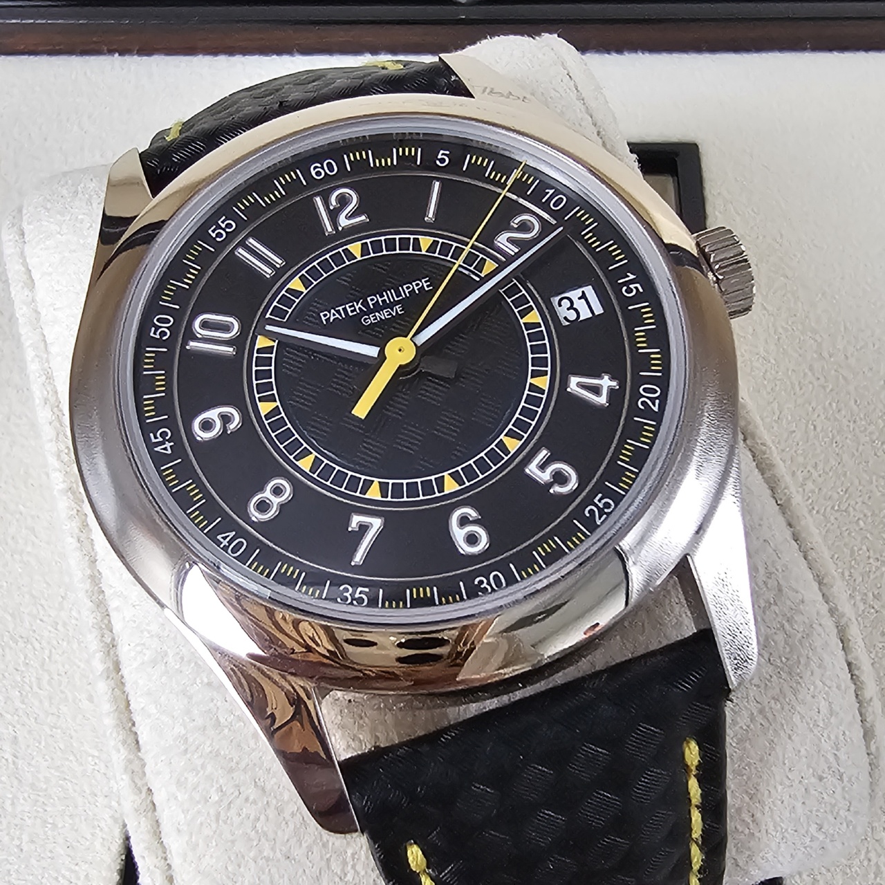 Patek Philippe latest Calatrava collection with new white gold timepieces featuring a modern, graphic style.
