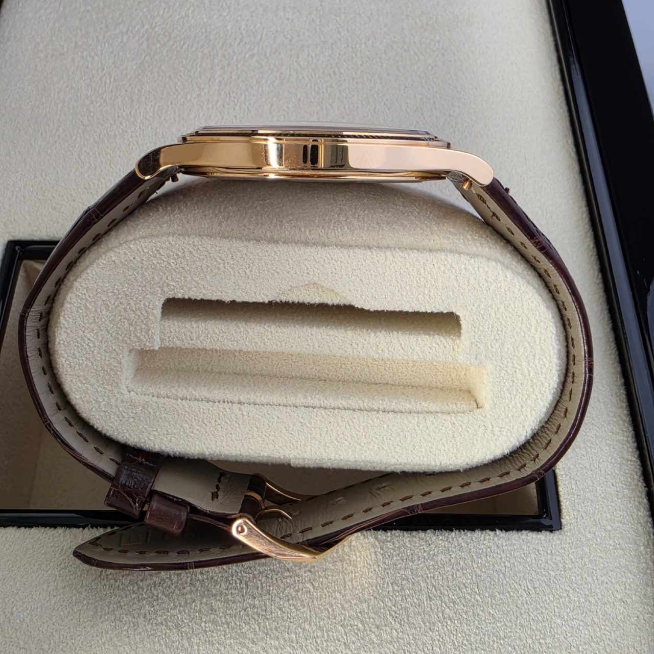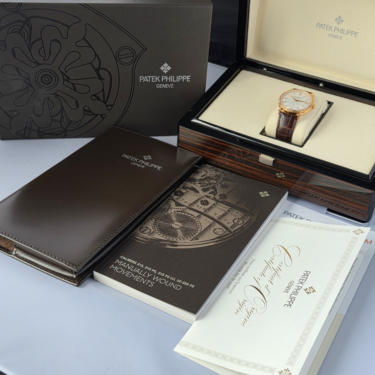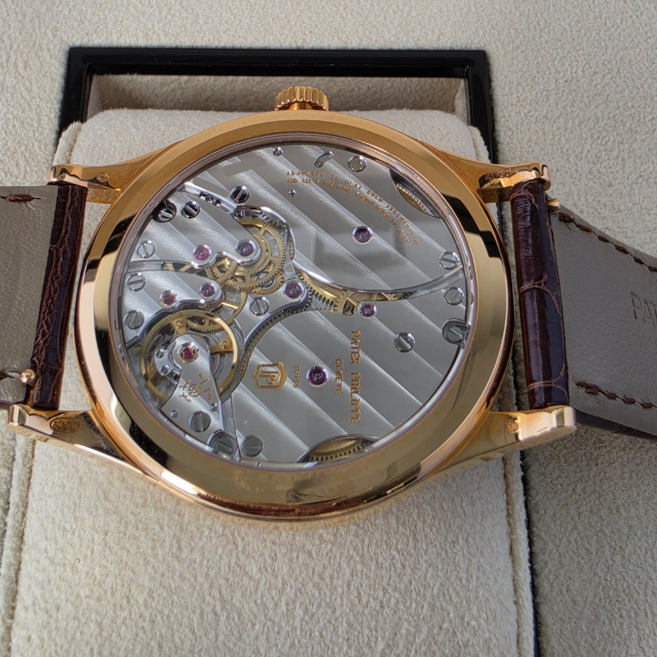 Simply Stunning! This is the latest Calatrava in 18k Rose gold with silvery graibed dial with applied hour markers, it has to be one of the most desirable dress pieces on the market.