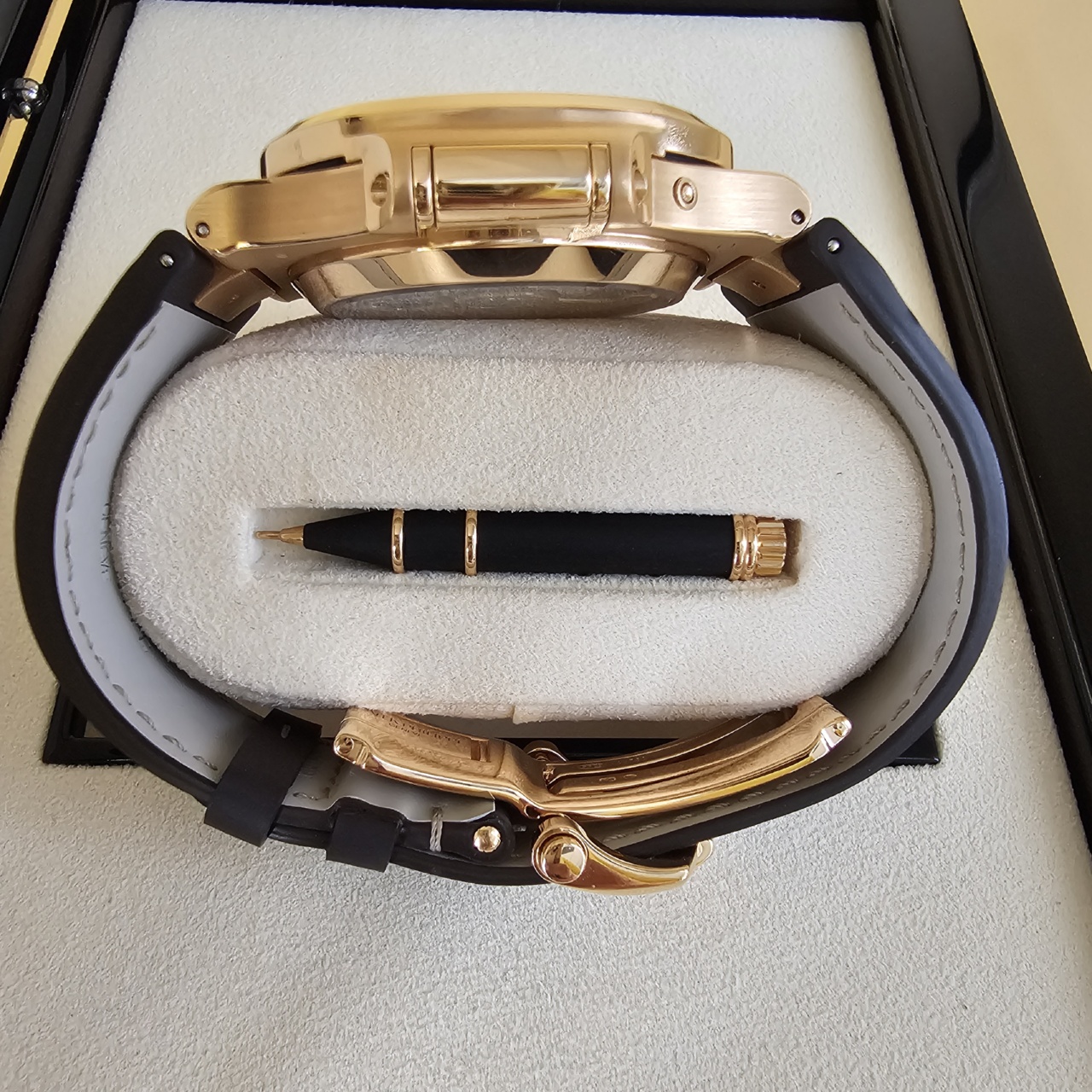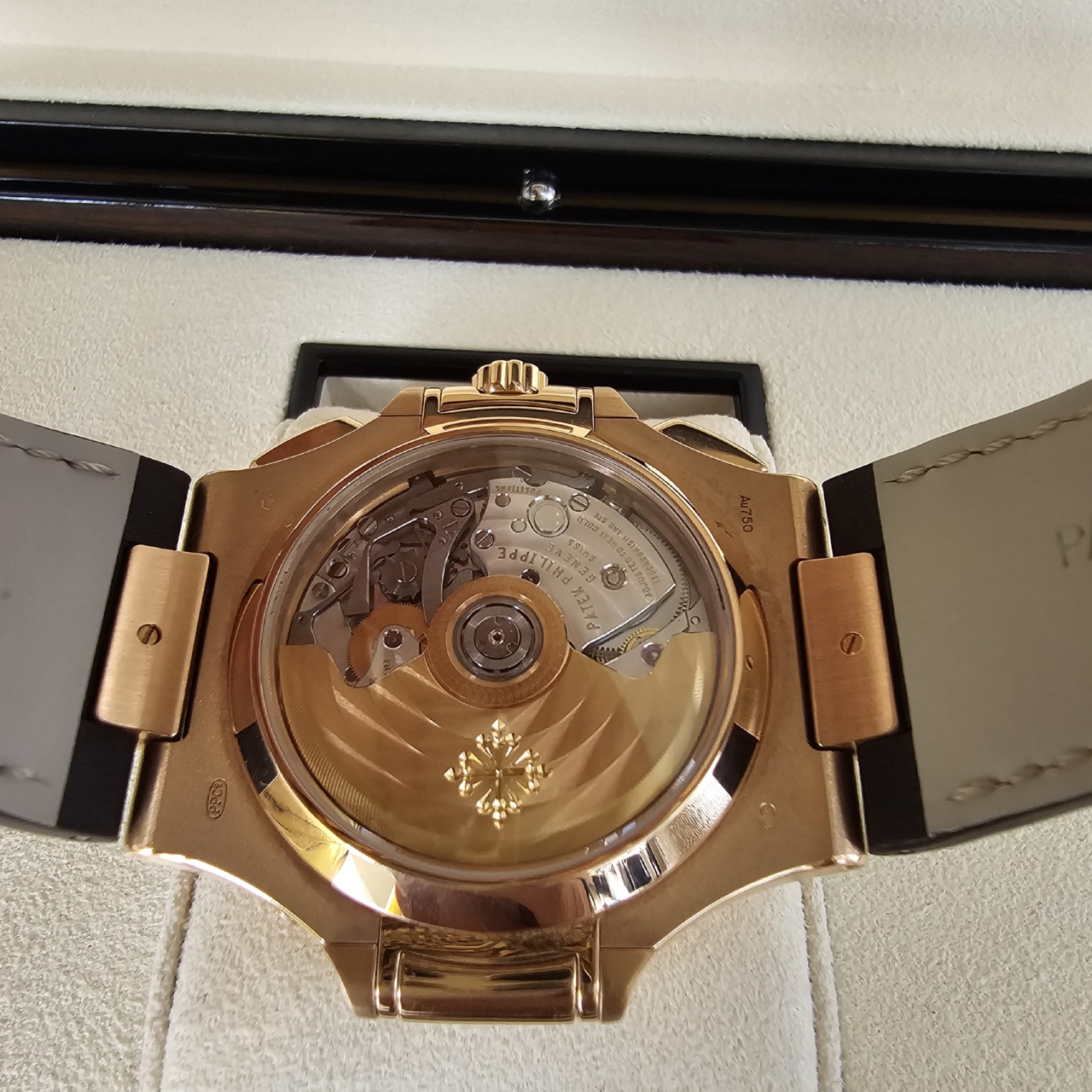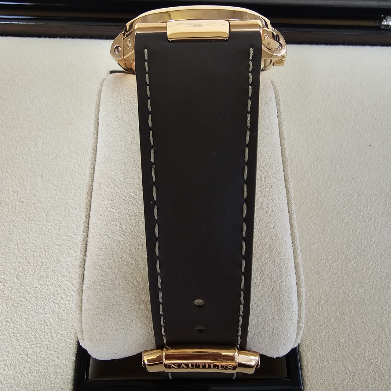 Bracelet: Rubber Strap w/Nautilus fold-over clasp. Comes with Unused Patek Phillipe Leather Strap