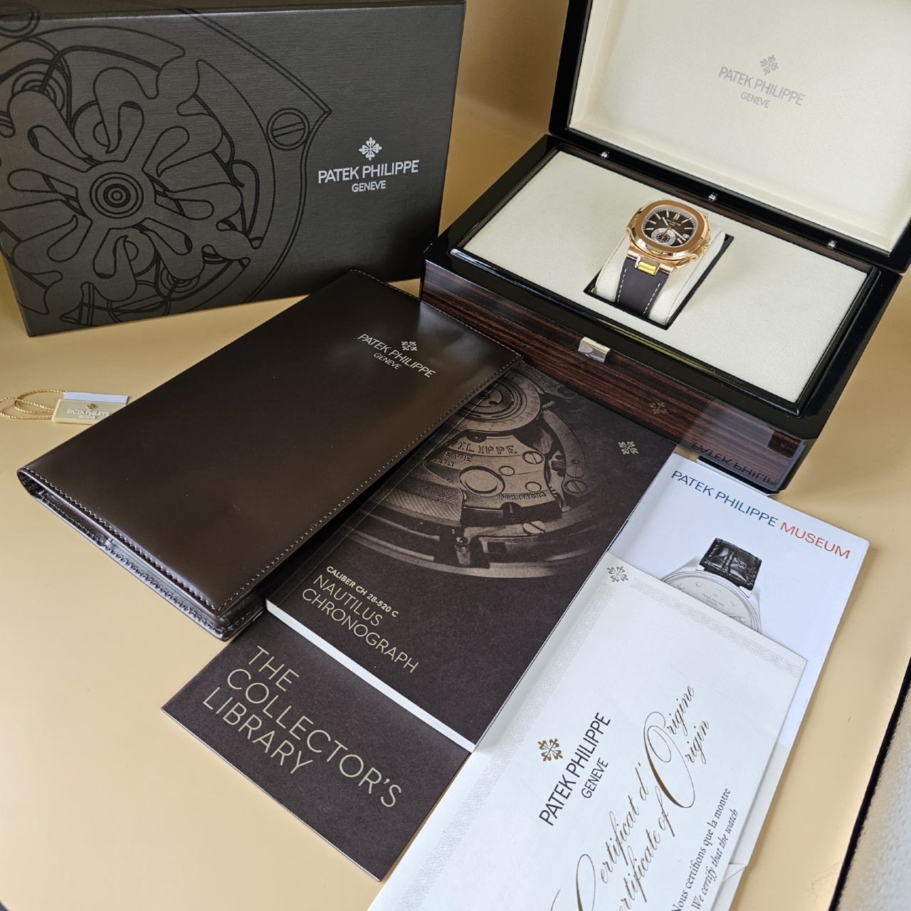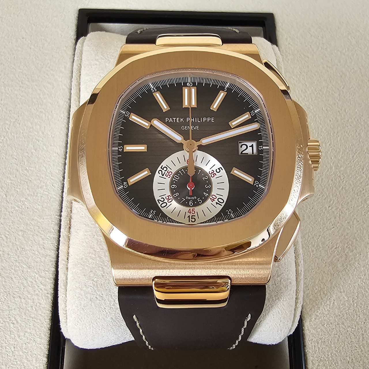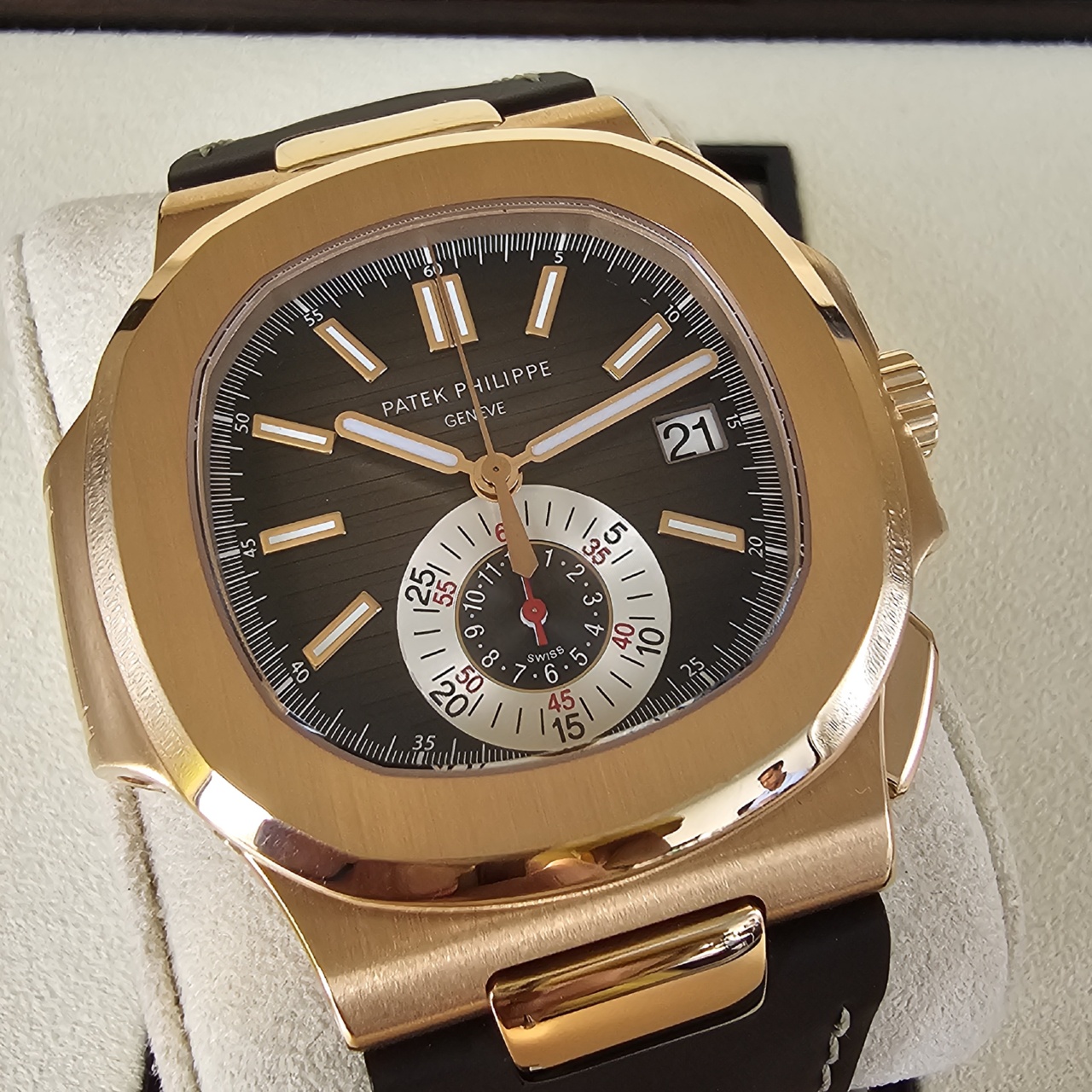 Bracelet: Rubber Strap w/Nautilus fold-over clasp. Comes with Unused Patek Phillipe Leather Strap