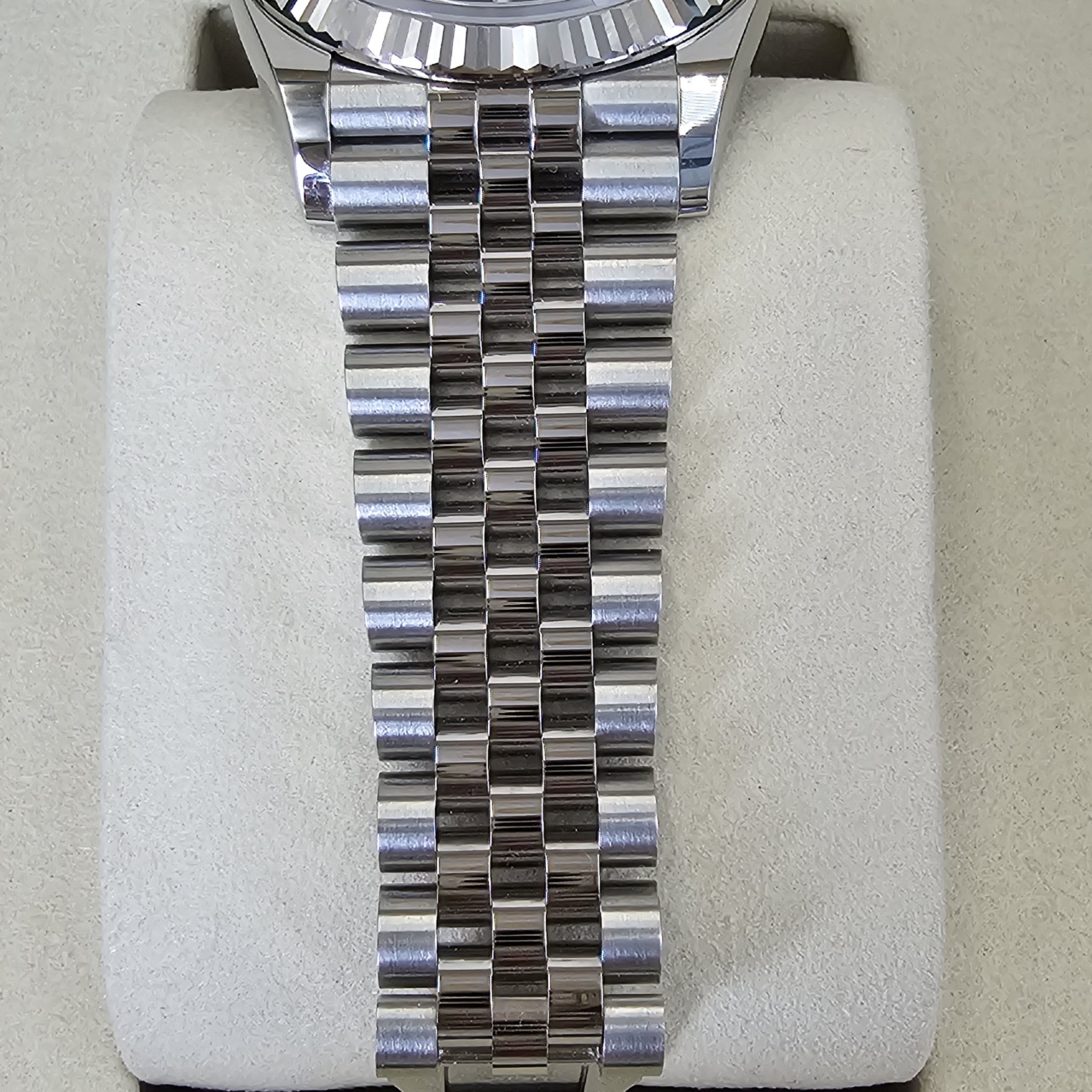Case: Stainless steel (36mm) w/ 18k white gold Fluted bezel, inner reflector ring engraved with serial number