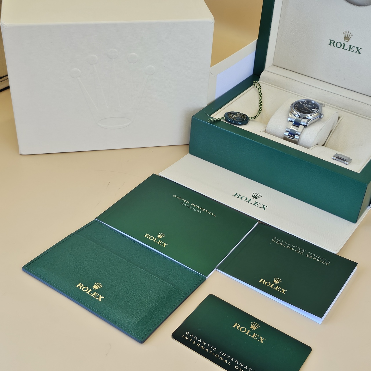 Warranty: Comes with One Year Luxury Watch Limited Mechanical Warranty and Balance of Rolex warranty till 2029