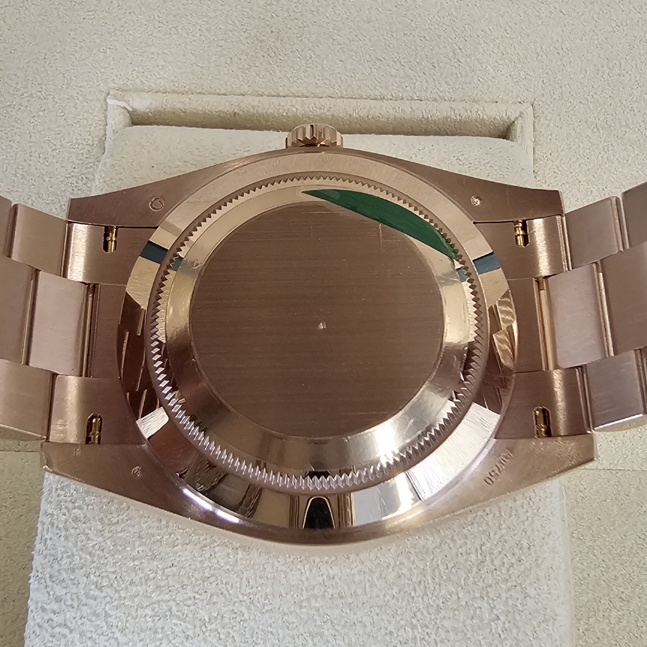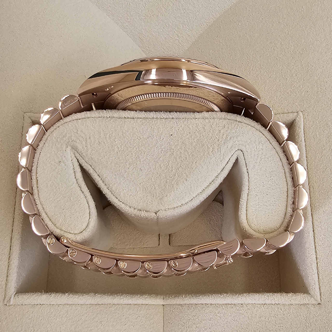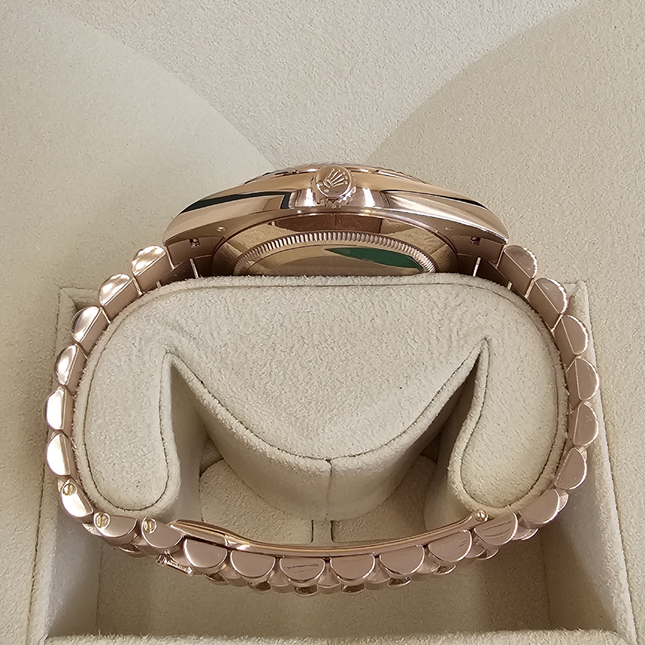 While the collection is also available in yellow gold, white gold, and platinum, the Everose edition is, by far, one of the most exceptional versions of the collection. Everose, aka 18 karat pink gold, is produced entirely by Rolex. It is of the highest quality and will hold its value well while maintaining a stunning luster.