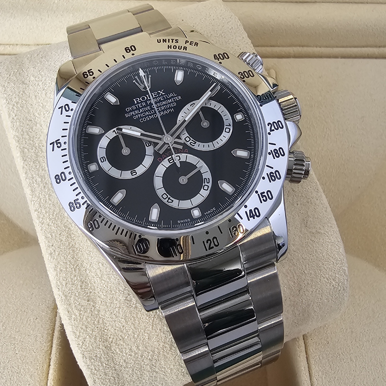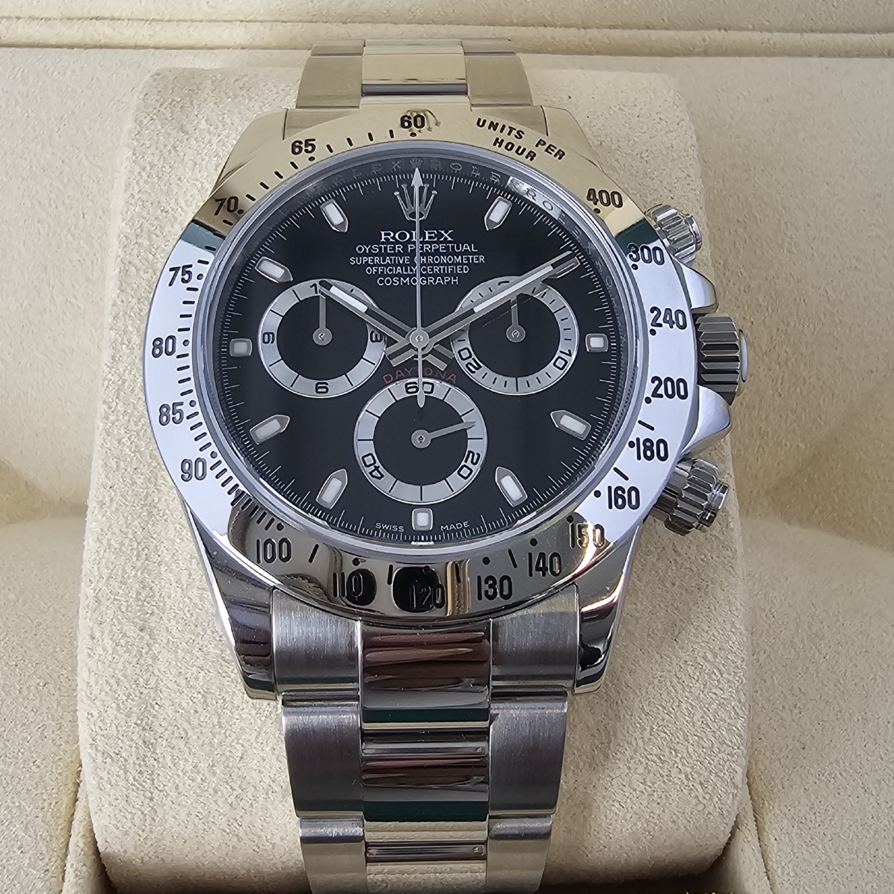Comes with the whole package this Black dial Daytona is in breathtaking condition. Highly desirable.