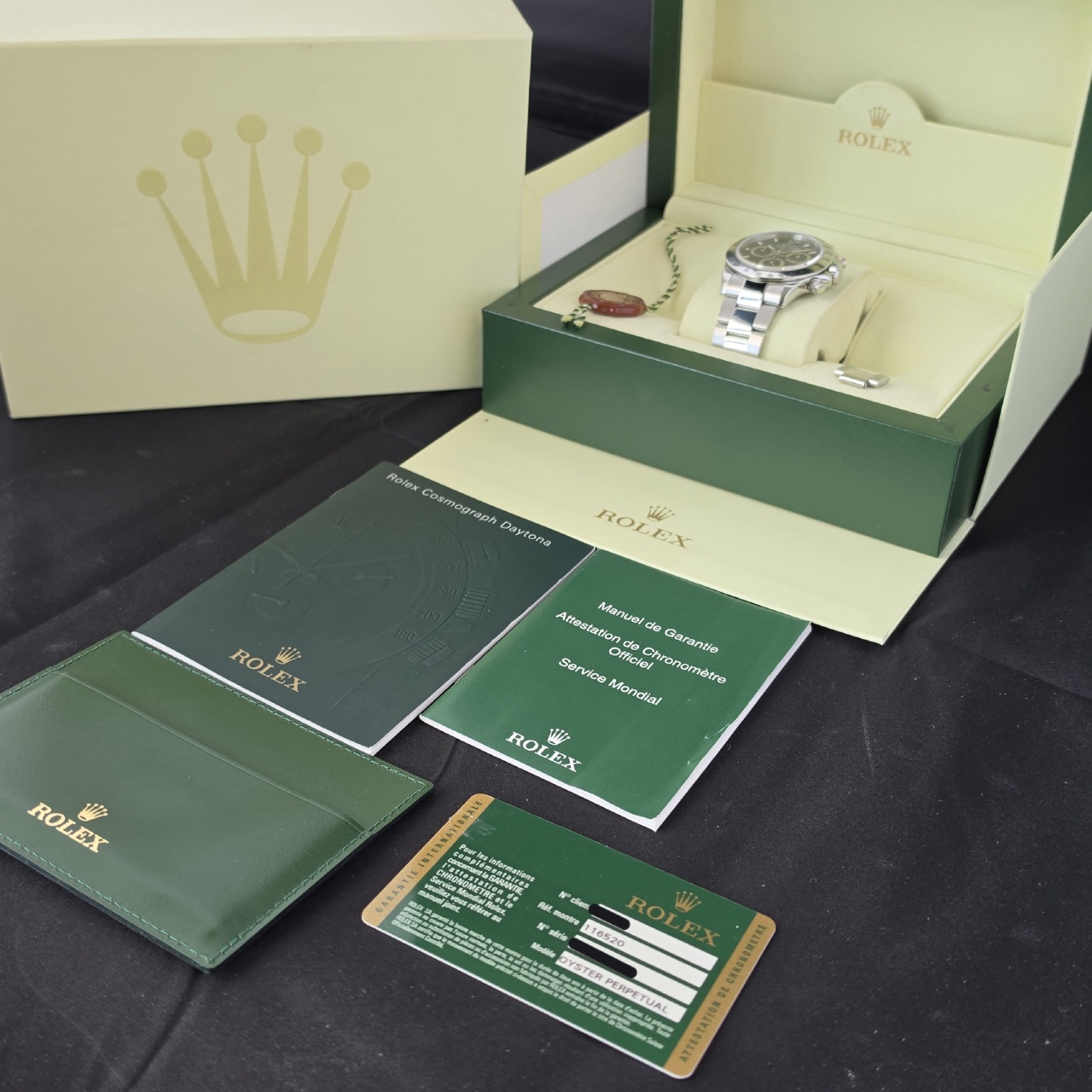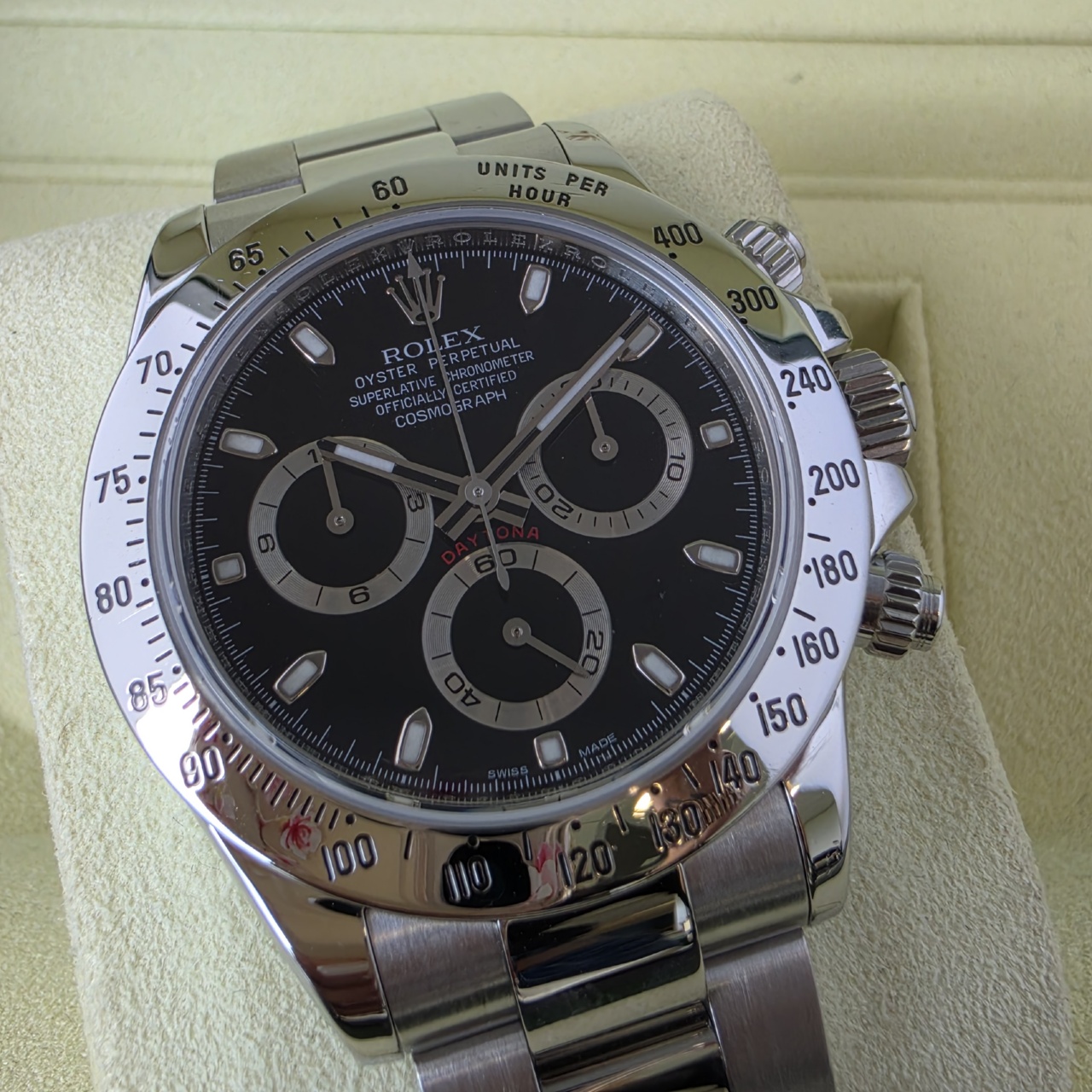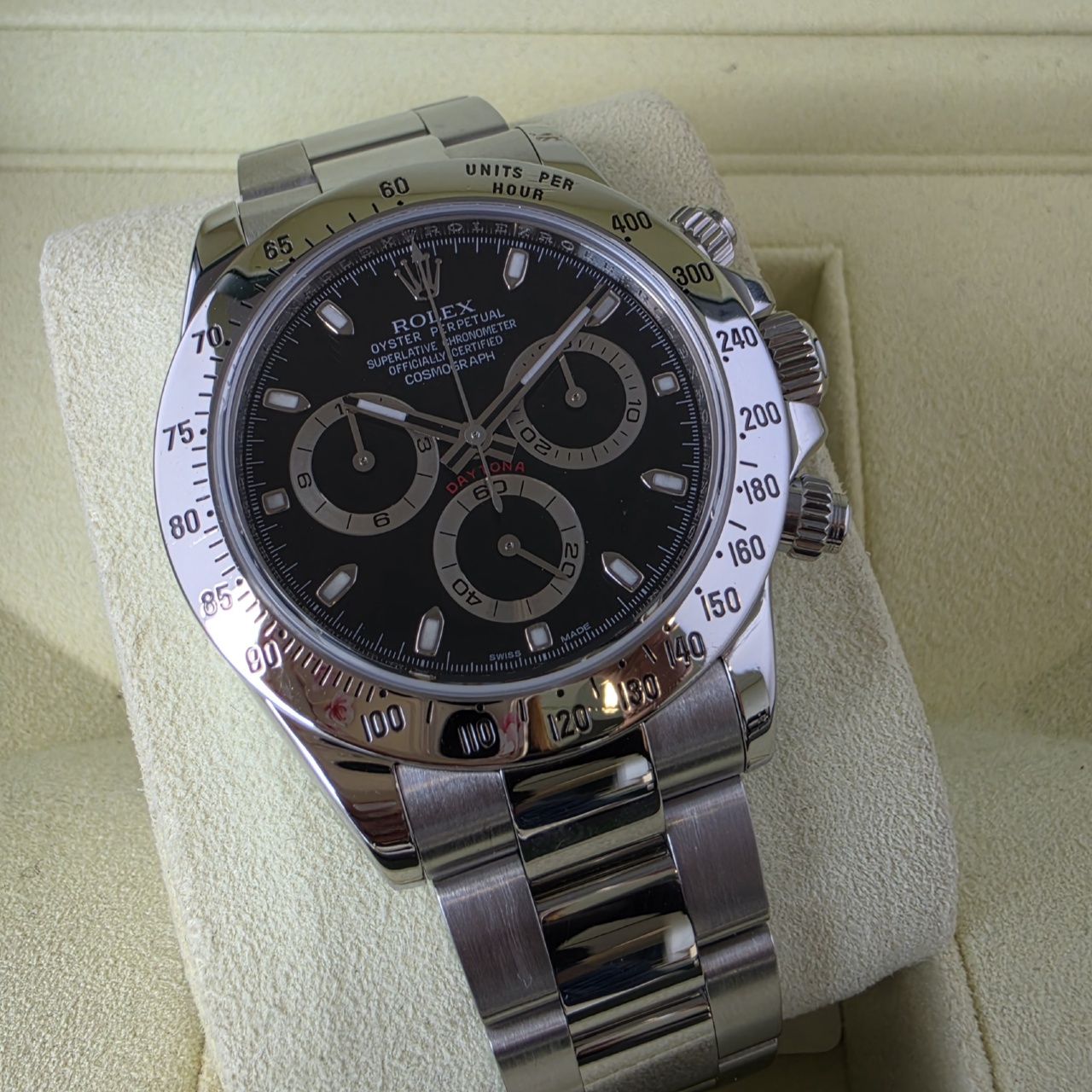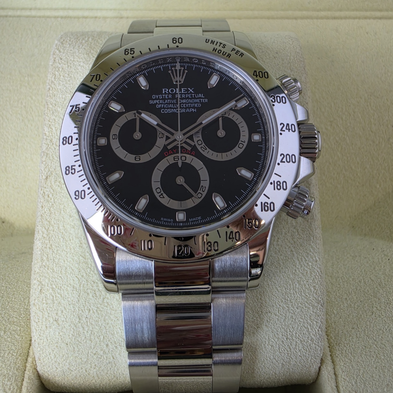 Comes with the whole package this Black dial Daytona is in breathtaking condition. Highly desirable.
