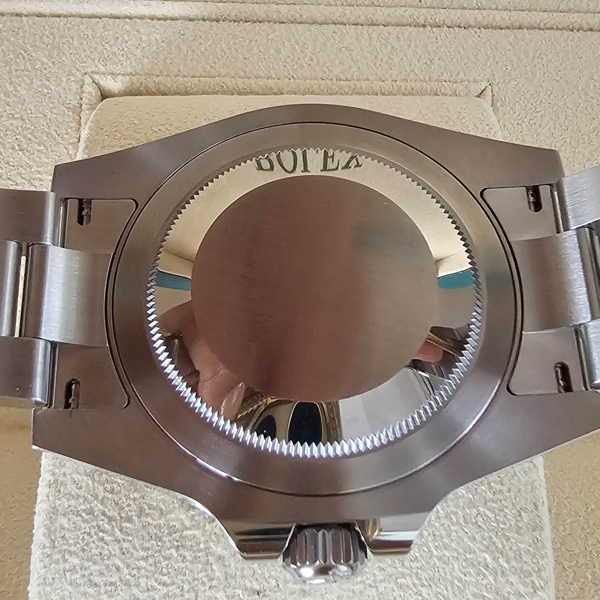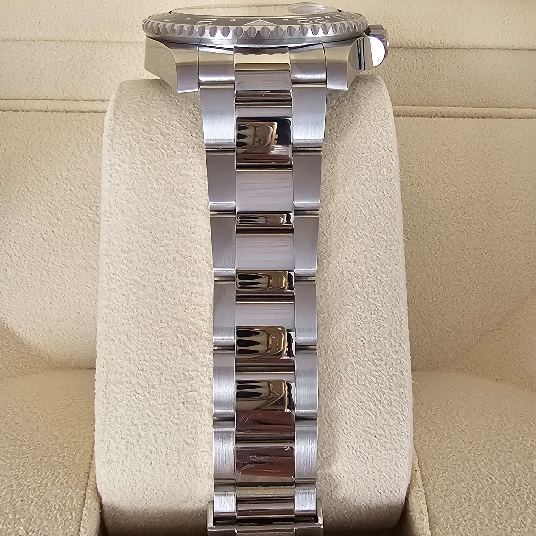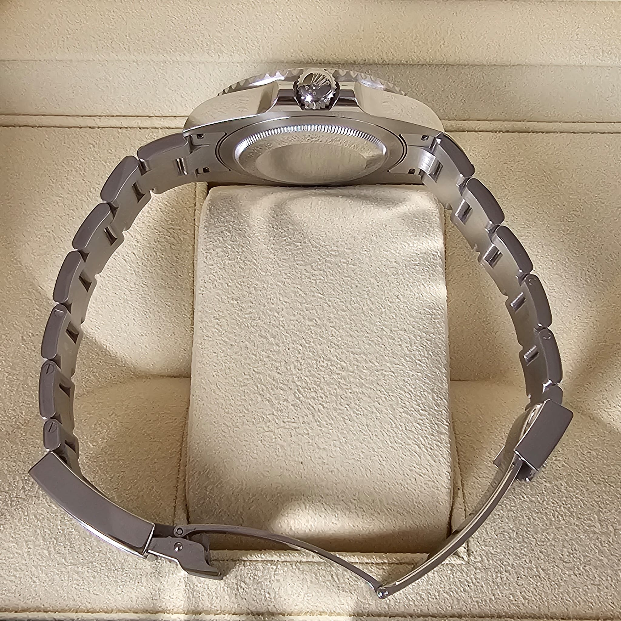 Case: Left handed stainless steel (40mm) w/ bidirectional rotatable bezel, green and black “Sprite” Cerachrom insert in ceramic, inner reflector ring engraved w/ serial number