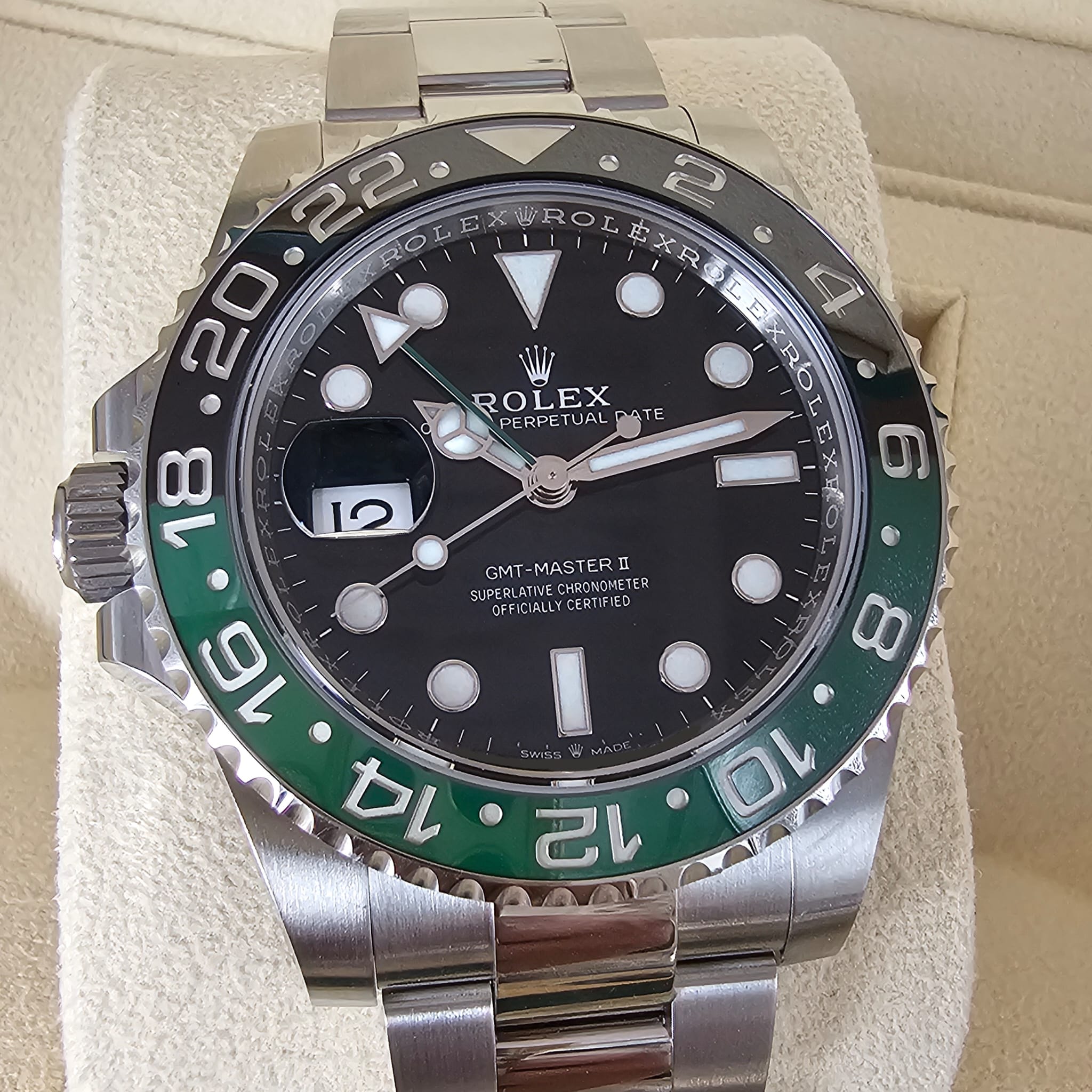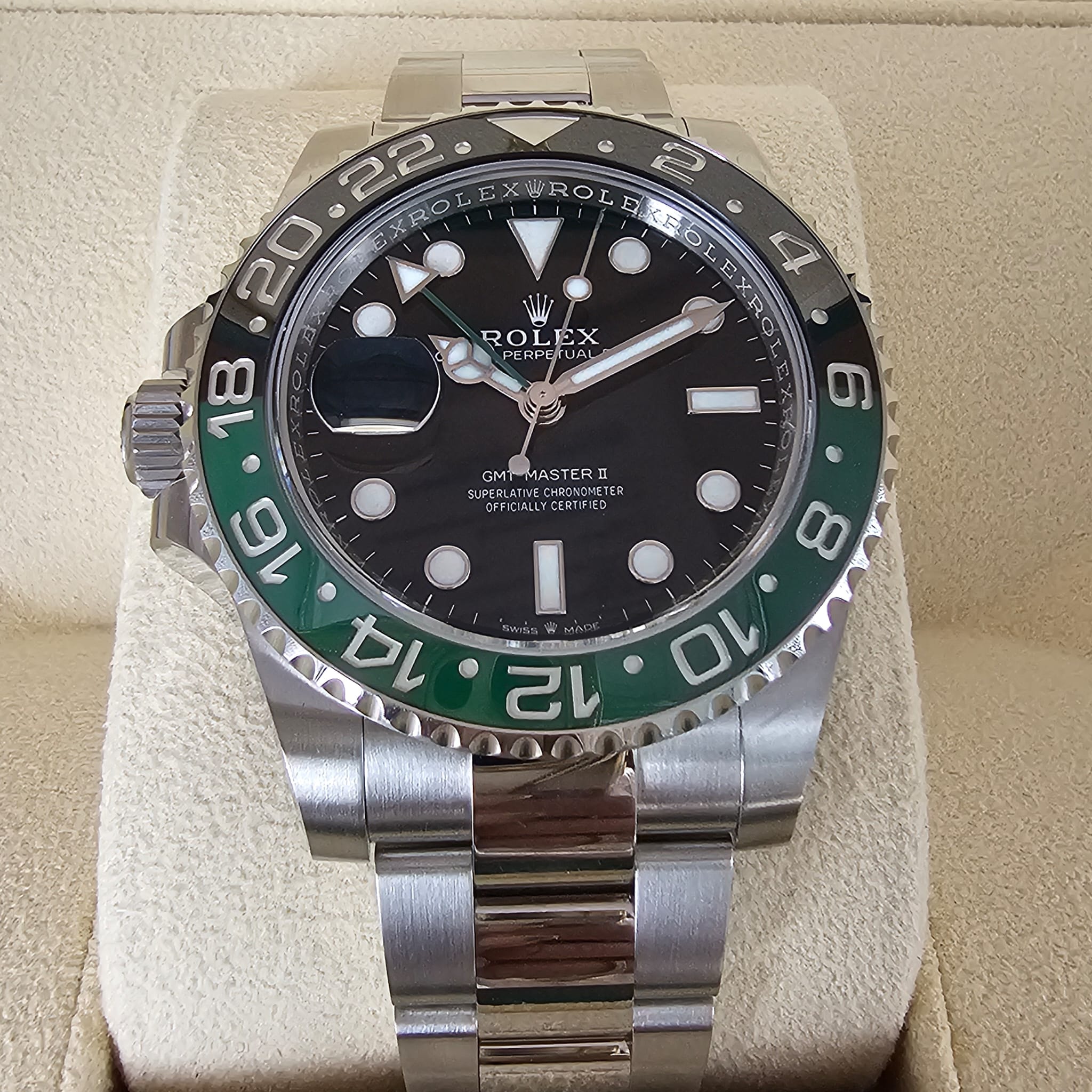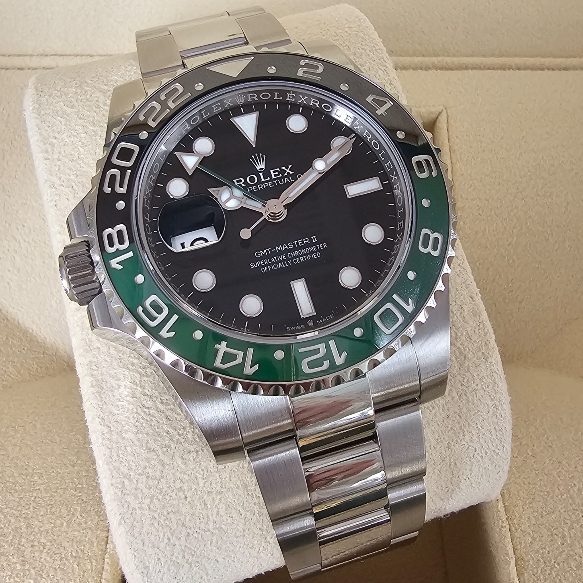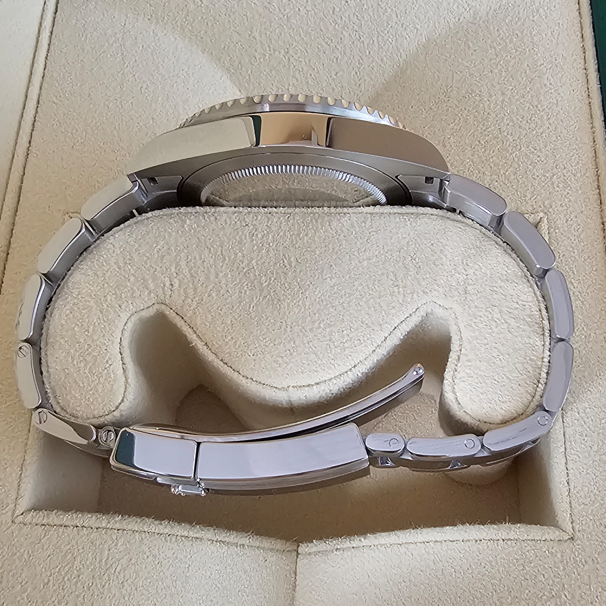 Case: Left handed stainless steel (40mm) w/ bidirectional rotatable bezel, green and black “Sprite” Cerachrom insert in ceramic, inner reflector ring engraved w/ serial number