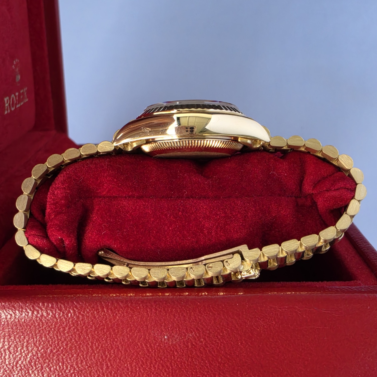 Crafted entirely from 18k yellow gold and fitted with the iconic President bracelet.