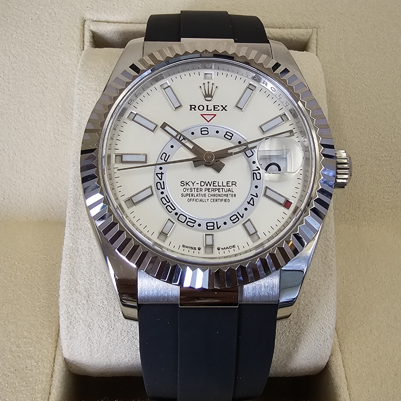 Bracelet: Black Oysterflex strap w/ Folding Oysterclasp with Rolex Glidelock extension system