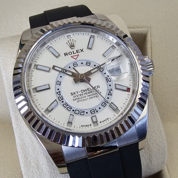 Case Material: 18k White Gold w/ Fluted, bidirectional rotatable Rolex Ring Command