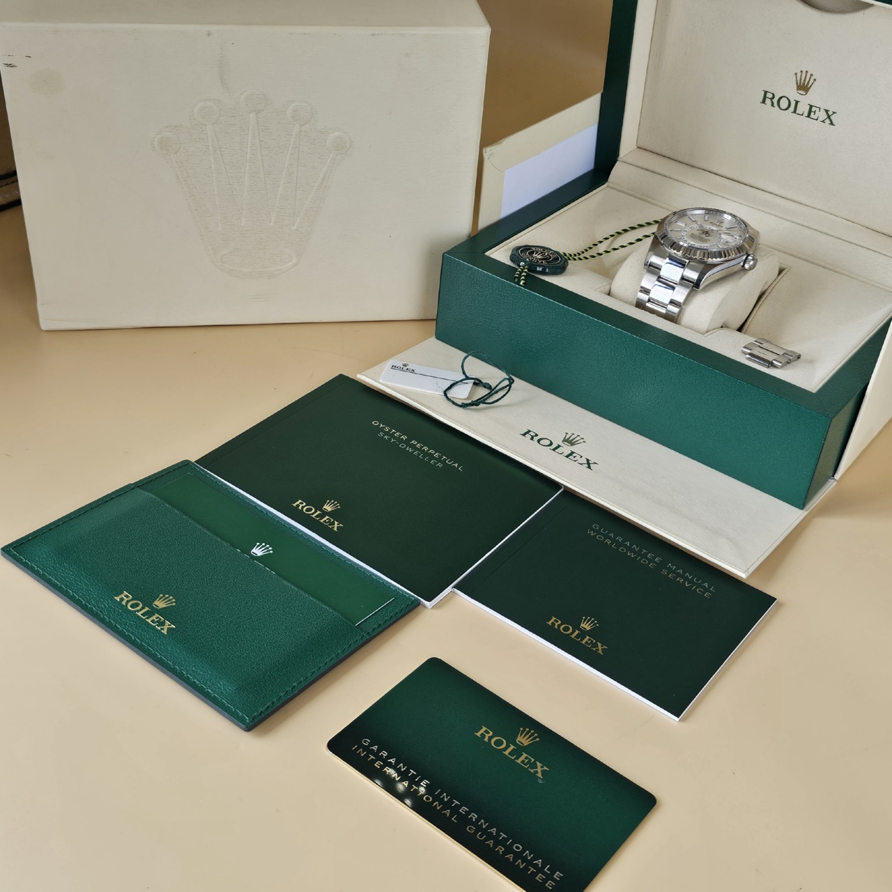 Box & Paper: Rolex box, booklets, hang tags, wallet and Rolex warranty card