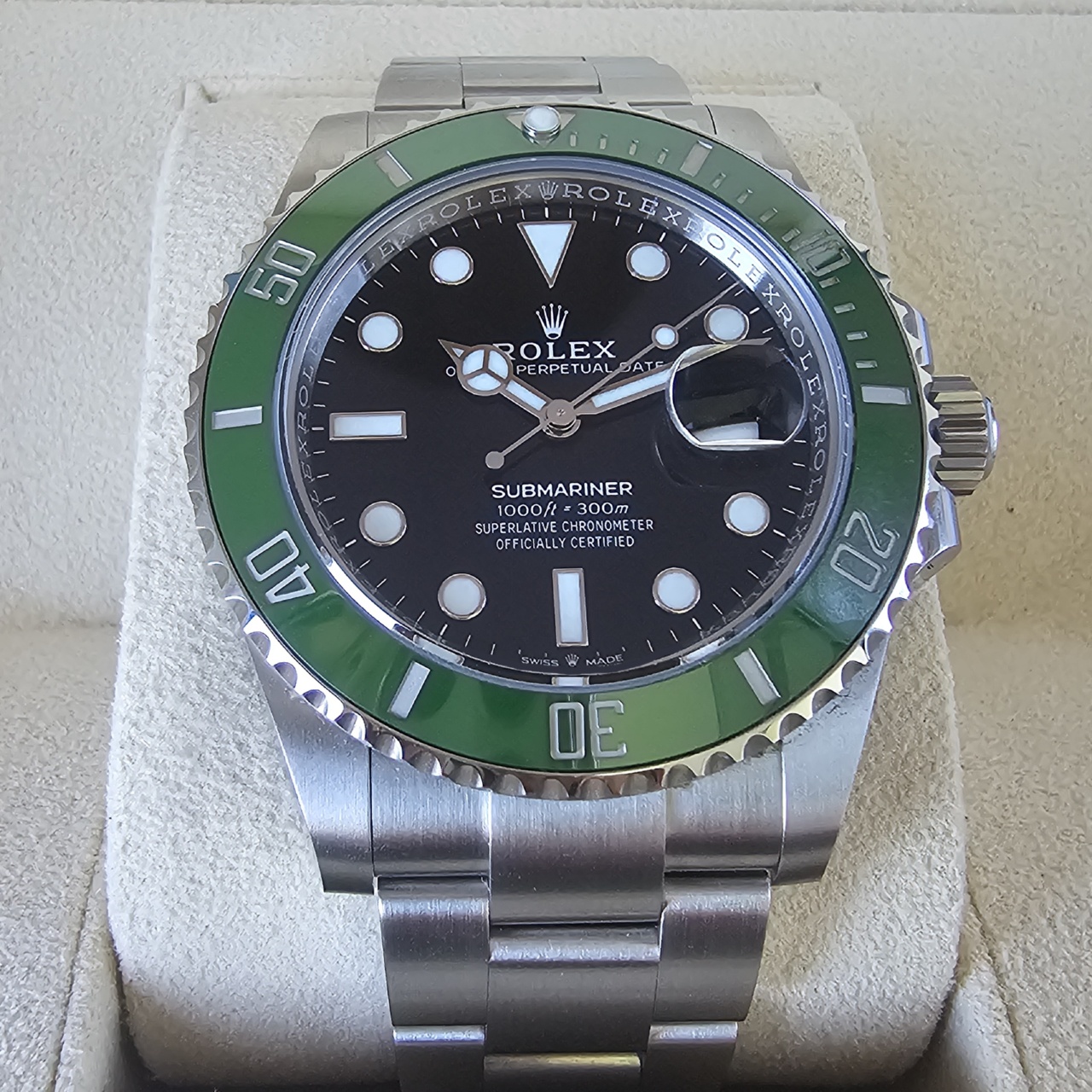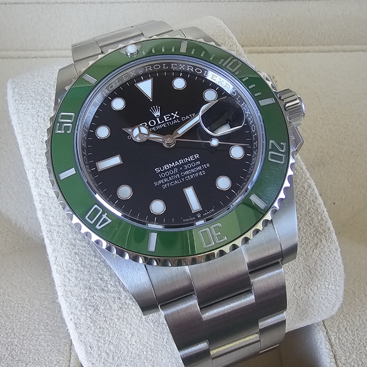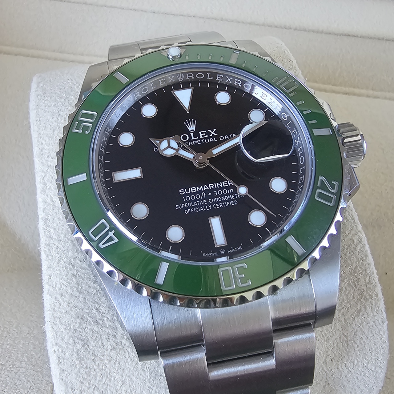 Case Material: Oystersteel Green unidirectional rotatable Cerachrom insert in ceramic, inner reflector ring engraved with serial number