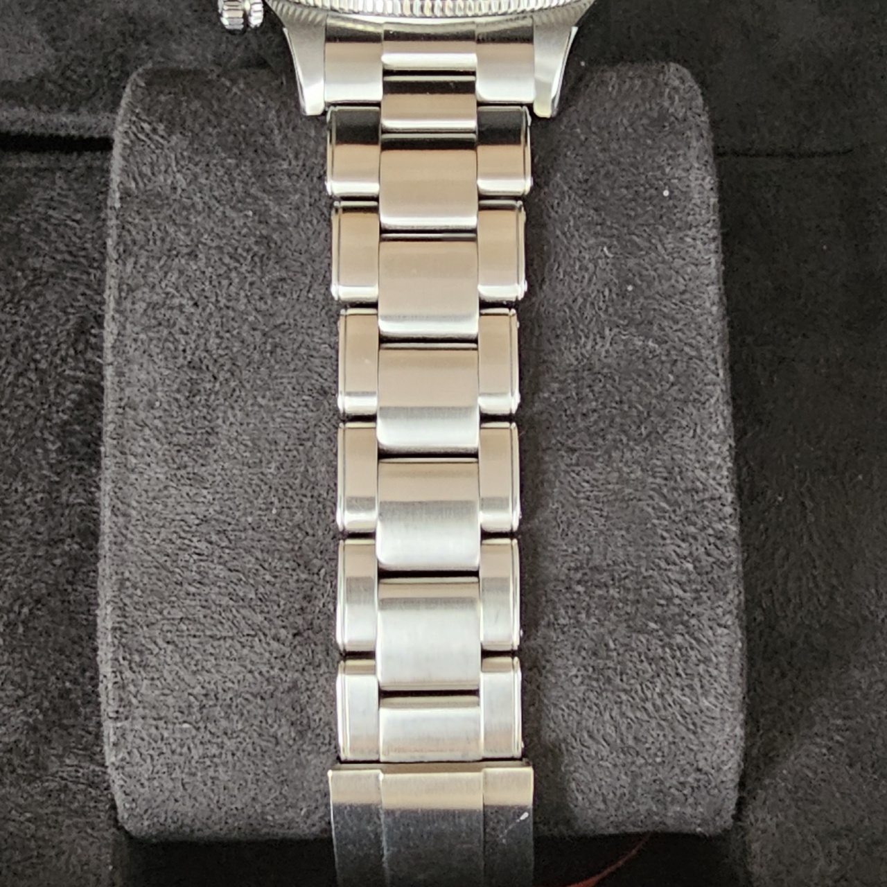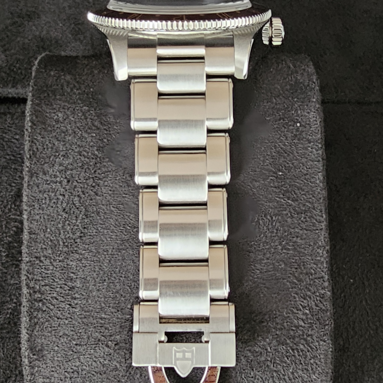 Bracelet: 3-link “rivet-style” stainless steel bracelet with polished and satin finishes with TUDOR “T-fit” clasp