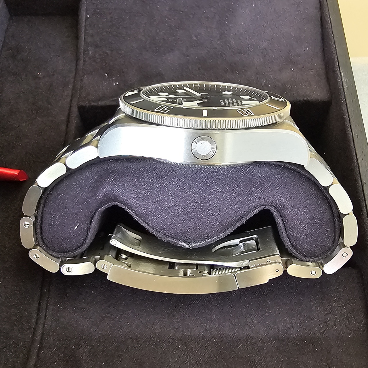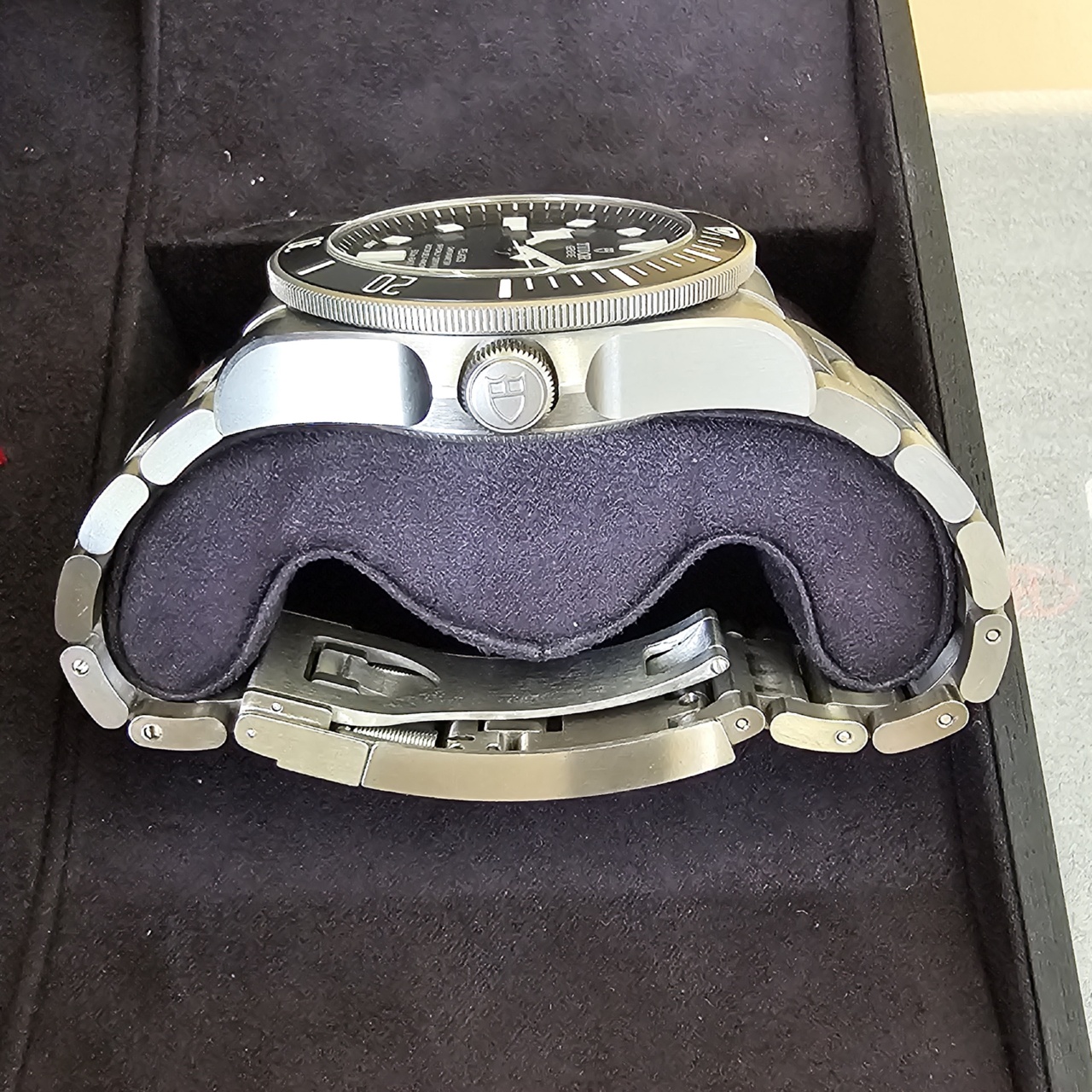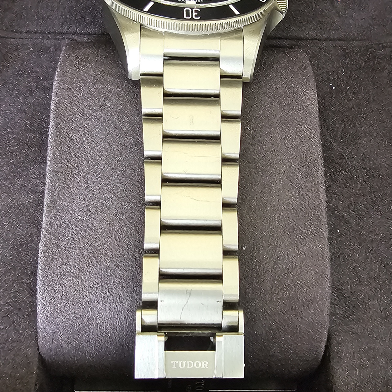 Bracelet: Titanium bracelet with folding clasp and safety catch in steel with bracelet extension system developed and patented by TUDOR. Complimentary Black rubber strap with buckle and extra extension piece supplied with watch.