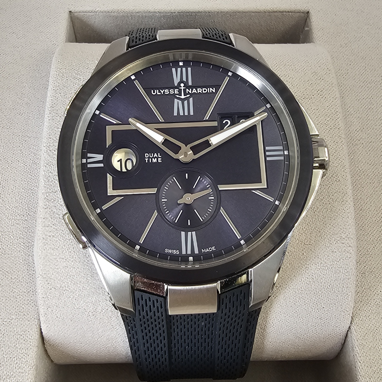 Ulysse Nardin Executive 42mm with fantastic blue dial on a rubber strap in stunning condition.